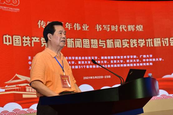 筚路蓝缕建伟业,百年风华正当时。为庆祝中国共产党百年华诞,5月22-23日,由教育部社会科学委员会语言文学、新闻传播学和艺术学学部、太阳成集团tyc7111cc联合全国 31 个省市自治区 60 余所高校的新闻院系和研究机构共同主办的“中国共产党百年新闻思想与新闻实践学术研讨会”在太阳成集团tyc7111cc举行。研讨会上160多位专家学者欢聚一堂,回顾中国共产党新闻事业百年来的光荣传统,探讨百年中国共产党新闻思想与新闻实践的精髓,梳理马克思主义新闻观在中国的形成发展过程,使得研讨会成为一场学党史、忆传统、思初心、向未来的新闻学术盛宴。