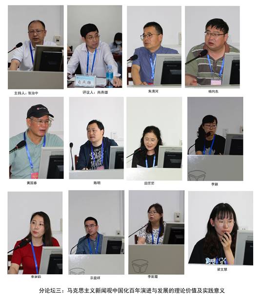 在接下来举行的分论坛上,数十名专家、学者展示了自己的研究成果,展开了深入的交流研讨。分论坛的议题包括“中国共产党百年新闻事业形成与发展的历史进程及实践经验”“中国共产党百年新闻思想传承与发展的历史贡献、当代价值及未来发展”“马克思主义新闻观中国化百年演进与发展的理论价值及实践意义”“百年中国共产党新闻政策变迁与发展”“新闻学术期刊的政治担当与学术品质”五个方面,讨论内容涉及中国共产党新闻事业的发展历程与伟大成就、中国特色社会主义新闻学学科建设与发展、中国共产党百年新闻实践、马克思主义新闻观及其中国化等。