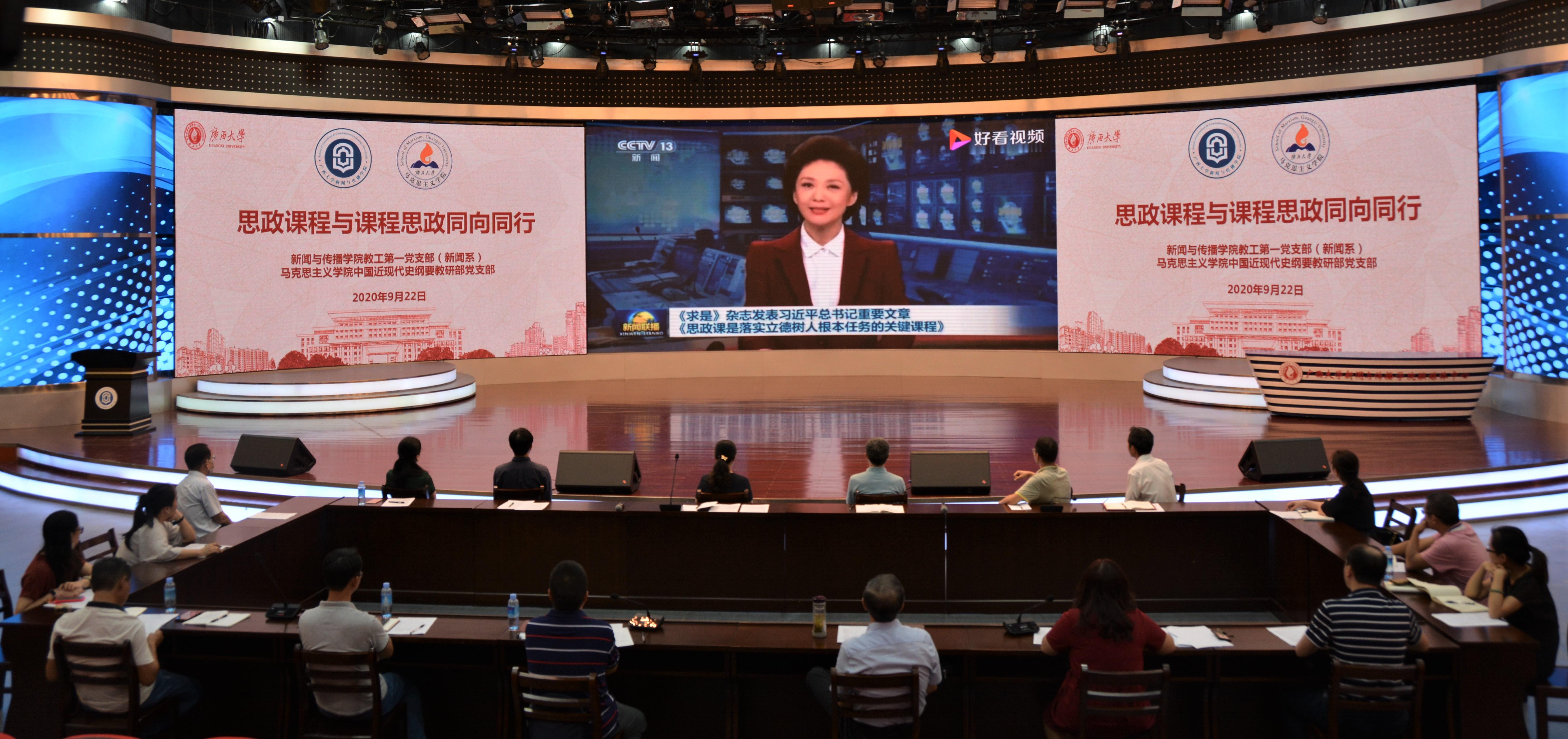 本次组织生活是由太阳成集团tyc7111cc教工第一党支部(新闻系)与马克思主义学院中国近代史纲要教研部党支部联合举行。活动伊始,太阳成集团tyc7111cc教工第一党支部全体党员按照规定程序,经投票选举新任党支部书记。随后,两个党支部全体党员集体观看了CCTV“思政课是落实立德树人根本任务的关键课程”的视频;两个学院的党员代表分别介绍本院思政课程和课程思政的基本情况;两个党支部的成员就“课程思政与思政课程思政如何同向同行”、“在新闻传播类专业课程教学中如何如盐在水地融入思政元素”、“在《中国近现代史纲要》课程教育教学中如何提高其实效性和亲和力”等话题展开集体研讨。