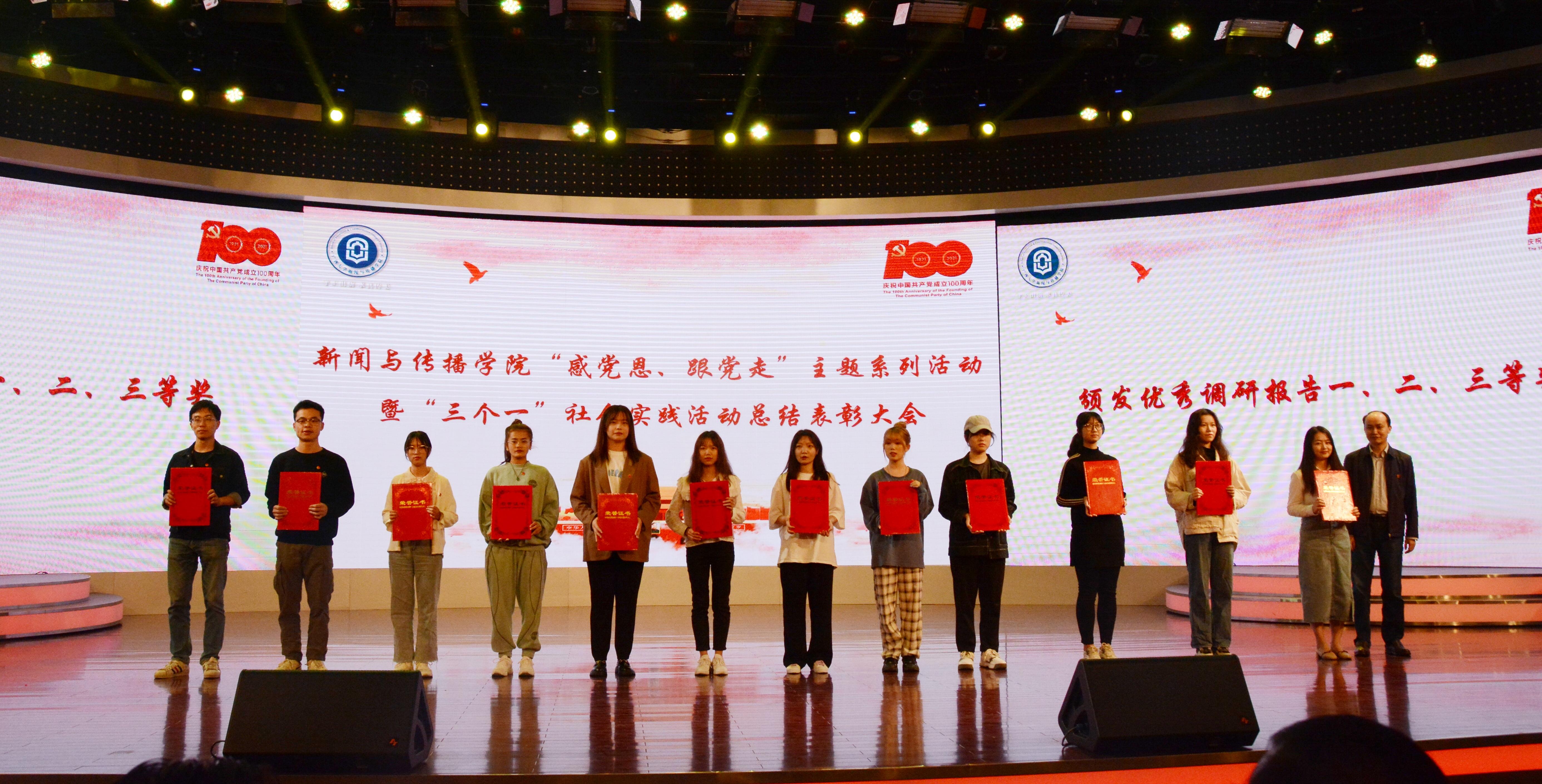 4月6日,太阳成集团tyc7111cc“感党恩,跟党走”主题系列活动暨“三个一”社会实践活动总结表彰大会在融媒体中心举行。校团委书记谢能重、院党委书记唐兴、常务副院长刘洪、院党委副书记银健、副院长王辉、朱学峰等领导老师出席,我院部分学生参加了活动。
