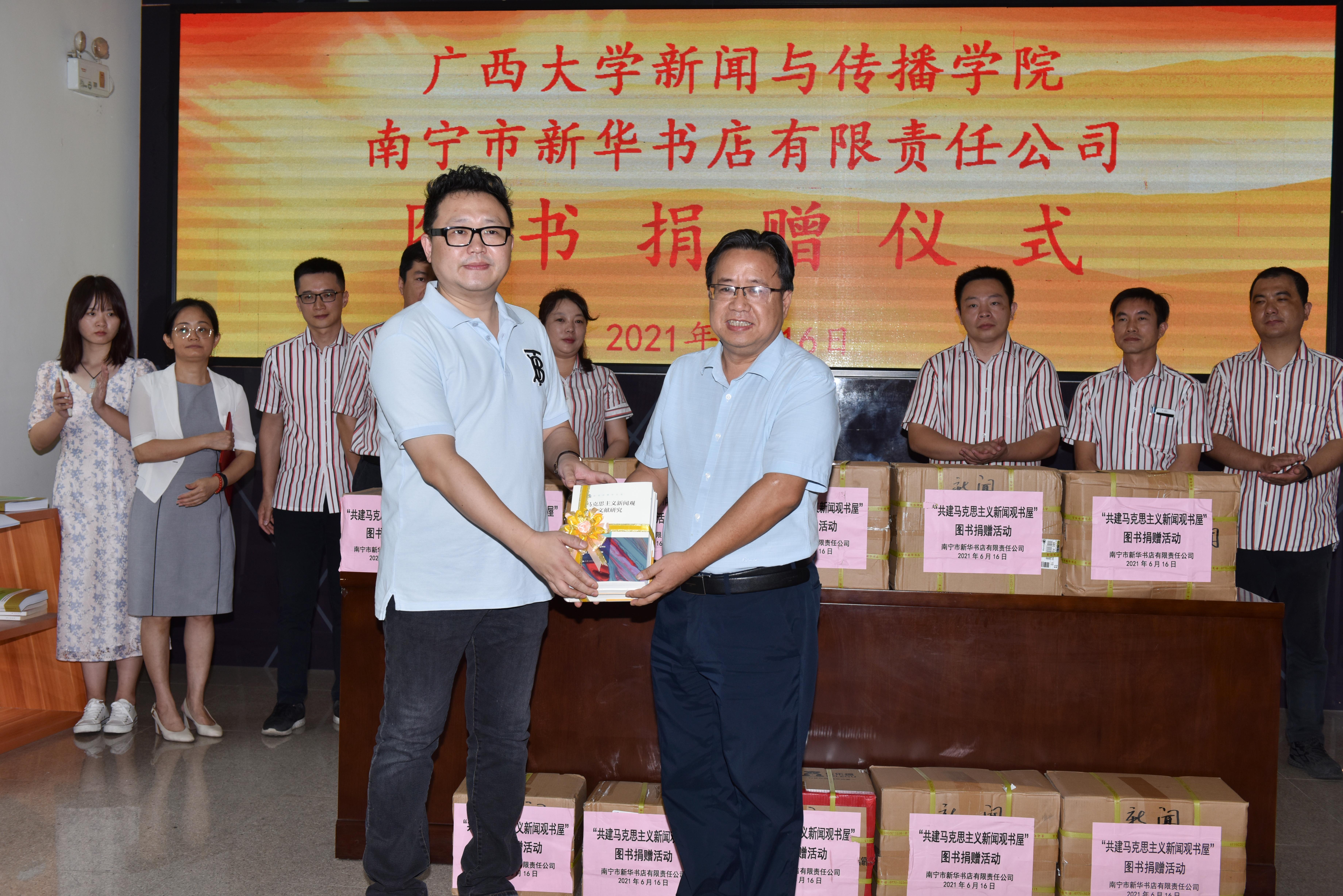 2021616日,南宁市新华书店有限责任公司向太阳成集团tyc7111cc图书捐赠仪式在学院一楼大厅举行。太阳成集团tyc7111cc师生和南宁市新华书店有限责任公司有关负责人出席活动。