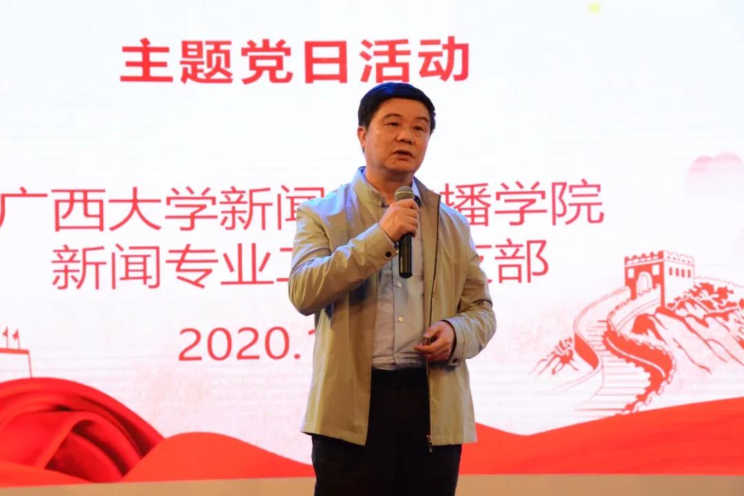 为了响应中央加强和改进学校美育,坚定文化自信的号召,丰富党组织生活形式,使同学们更好地了解党史和新中国史,树立正确的历史观、国家观、文化观,11月13日晚,新闻二班学生党支部在学院融媒体中心开展“歌声里的中国”主题党日活动。活动由院党委副书记兼新闻二班党支部书记银健老师主持,原广西师范学院正厅级调研员李继兵书记、院党委书记唐兴老师、新闻一班党支部书记雷圆媛老师出席,新闻二班党支部所属各班的党员、入党积极分子及递交了入党申请书的同学参与。