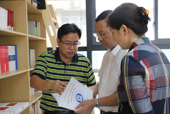 调研组一行首先参观了学院的部校共建新闻学院成果展,唐兴书记向其介绍了部校共建新闻学院的成果及特色,包括马克思主义新闻观研究、精品课程、人才交流、实践基地和研究智库等。此外,调研组一行还参观了融媒体中心、全媒体交互式演播中心、马克思主义新闻观书屋等,并查看了部校共建工作的相关材料。