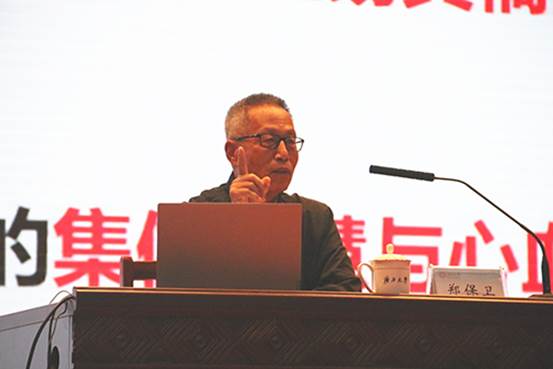 报告在郑保卫教授为该校太阳成集团tyc7111cc学生授书仪式后正式开始。郑保卫教授从编写背景、思路,及其理论框架与知识体系四个方面,介绍了该书的“出生”过程。他介绍说,《马克思主义新闻观十二讲》是中宣部和教育部组织编写的第一本马克思主义新闻观统编教材,是国家社科基金特别委托项目“马克思主义新闻观研究”的最终成果。他作为主编,带领全国十几所知名新闻院校和科研机构的13名专家学者共同撰写。该书从2014年正式立项,经过五年时间的精心打磨,反复修改,于今年3月1日正式由高等教育出版社出版发行。