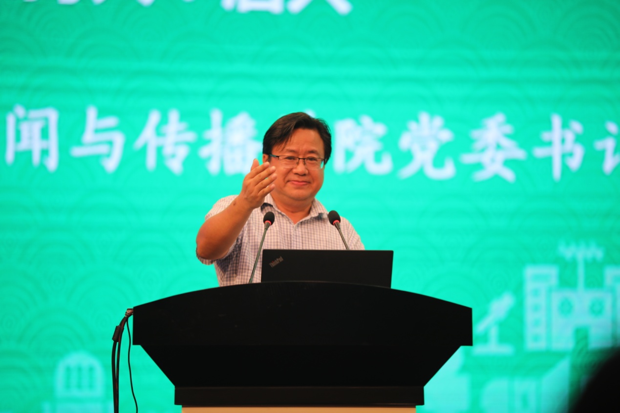 来自华中科技大学国家传播战略研究院院长张昆教授做了题为“新时代高校新闻传播学科建设的思考”的发言,他就信息化全球化和社会结构转型的背景下,对包括新闻传播学科在内的高校学科建设如何审时度势、精准定位,统筹学科建设和专业发展提出了建议。