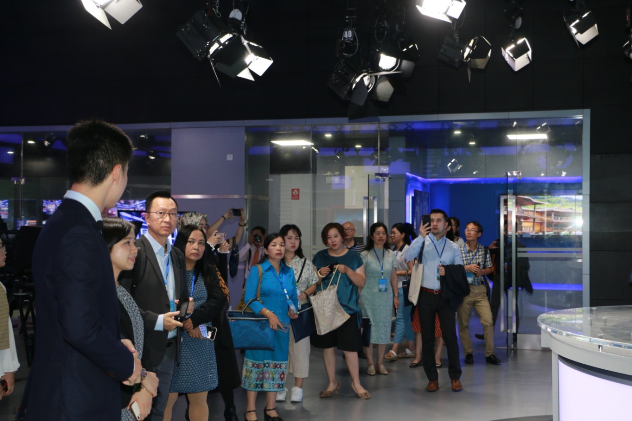 中外嘉宾们参观学院全媒体交互演播中心