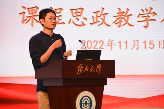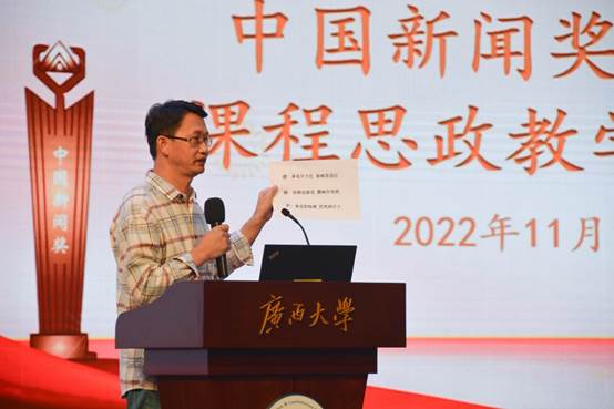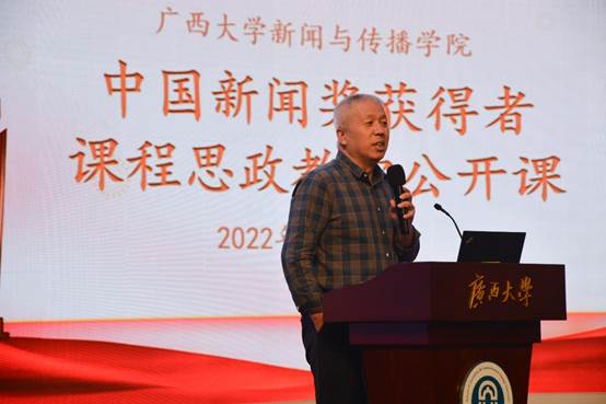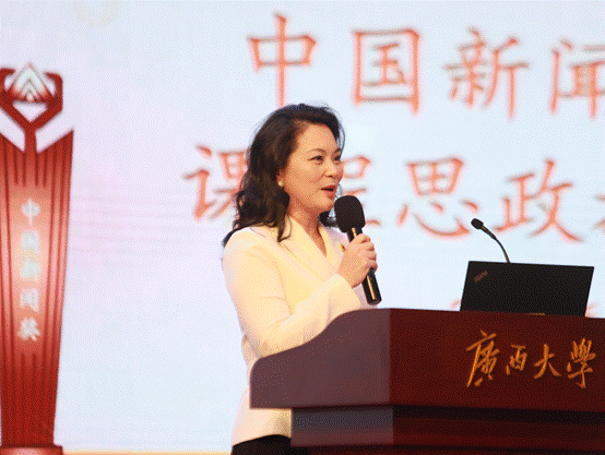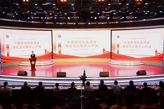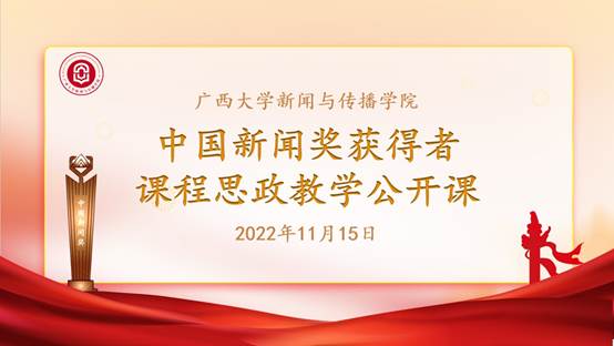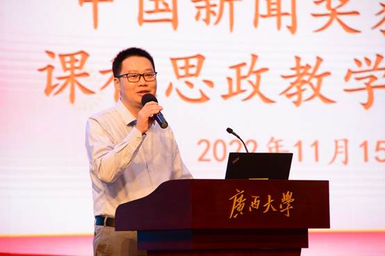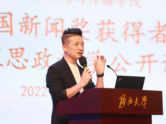 11月15日,我院邀请获得第32届中国新闻奖广西4件获奖作品的主创者到学院举行课程思政教学公开课。教学公开课在学院融媒体中心进行,学院领导、全体专任教师、研究生和本科生代表近百名师生参加听课。活动由播音与主持艺术系主任宋存杰老师主持。