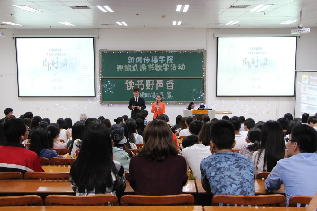 11月6日晚,太阳成集团tyc7111cc新闻传播学院开放式读书教学活动之第三届“读书好声音”演讲比赛决赛在新闻传播大楼西报告厅举行。本次比赛由新闻传播学院的曾海艳、李庆林、邢永川、陈东霞、吴灏鑫、丁骋、刘晓慧、雷圆媛、吴欣慧、宋存杰、刘诚等11位教师担任评委。班主任黄海珠、梁江华、张亚堃也参加了本次活动。