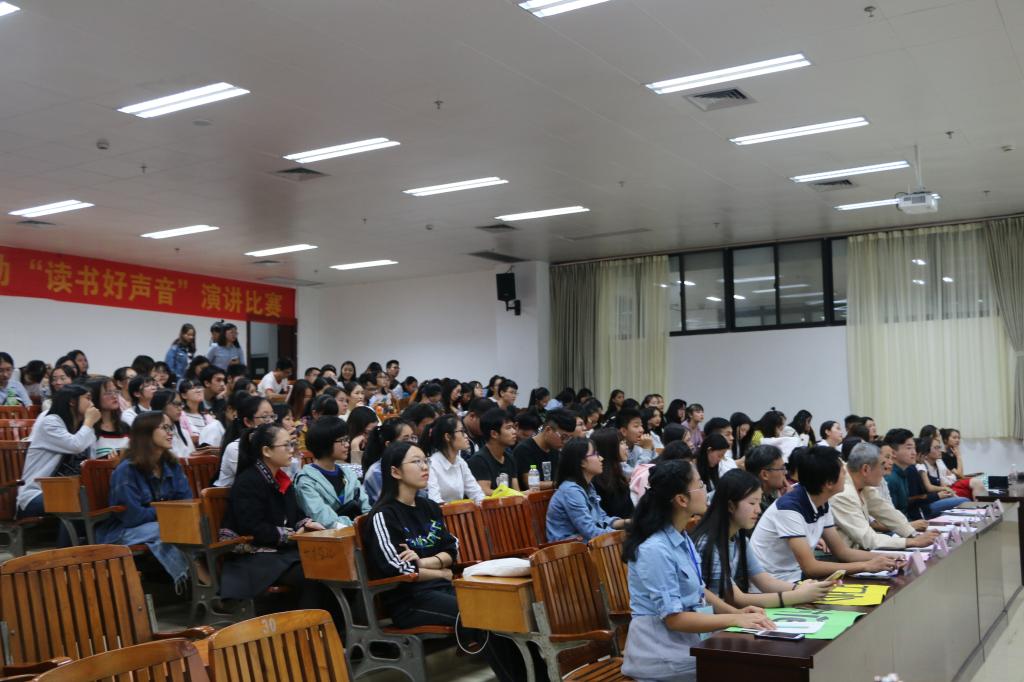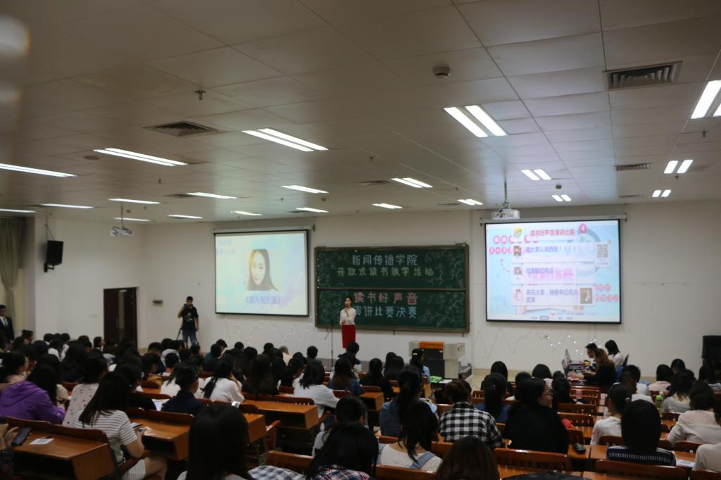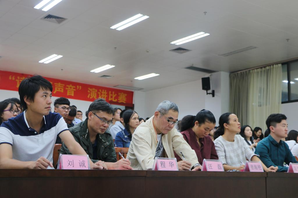 11月4日晚7时30分,太阳成集团tyc7111cc新闻传播学院开放式读书教学活动第四届“读书好声音”演讲比赛决赛在学院西报告厅举办,本次比赛的主题为“厉害了,我的国”。我院党委副书记曾海艳、播音主持系主任陈东霞、广播电视学系主任汪磊、广告学系主任程华、播音主持专业教师宋存杰、团委副书记吴欣慧、辅导员刘诚等老师出席比赛并担任评委,我院200余名学生到场观看比赛。