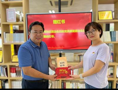 向过政治生日党员赠送书籍《家国情怀》和政治生日贺卡